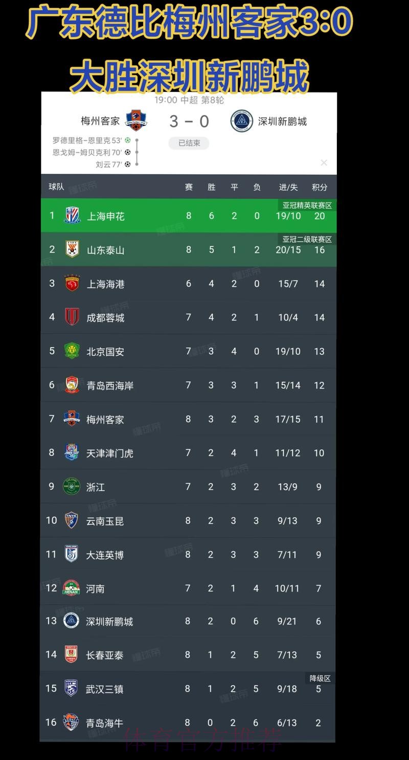 深圳战胜青岛黄海 梅州客家登顶积分榜